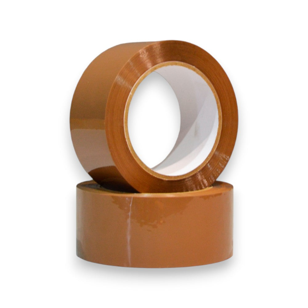 Cinta adhesiva marrón de alta resistencia, perfecta para sellar cajas de cartón y embalajes pesados. Adhesión fuerte y duradera, ideal para mudanzas y uso profesional.